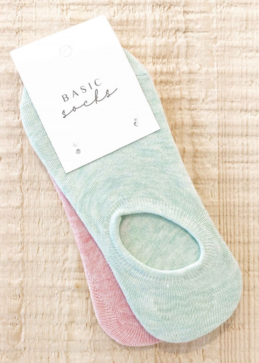 Basic Low Cut Socks 2 Pack - Green & Pink