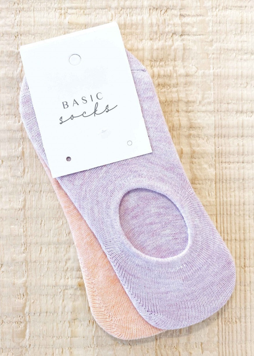 Basic Low Cut Socks 2 Pack - Lilac & Peach